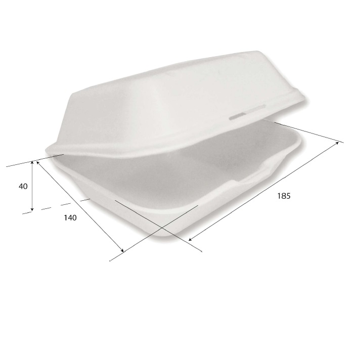 Food Box medium richiudibile in polpa di cellulosa 185x140x74mm, naturale ed ecologicamente sostituita alle tradizionali vaschette in alluminio e polistirolo. Capienza fondo 600ml.