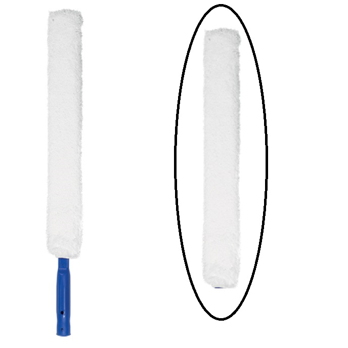 Ricambio per spolverino professional, idoneo per la pulizia di superfici alte e verticali, composto da un panno in microfibra (poliestere 100%) di colore bianco. Il panno può essere lavato in lavatrice a 30.C senza ammorbidente e/o candeggina